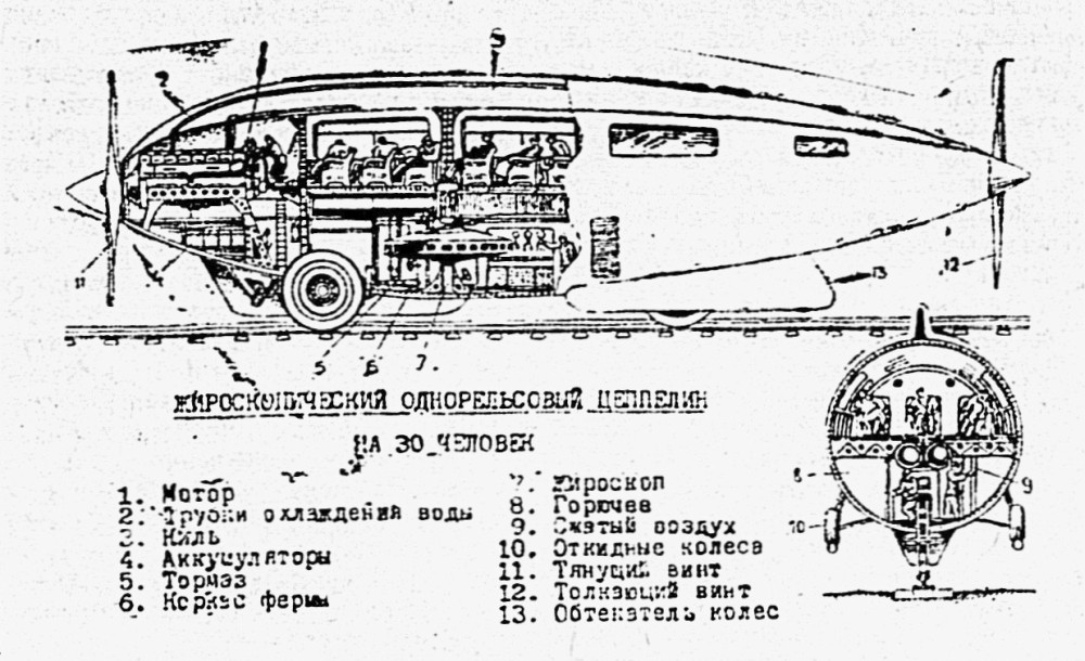 В связи с этим необходимо отметить проект пилота-конструктора Н.И. Гроховского о введения между Москвою и Ленинградом скоростных рейсов наземных жироскопических цеппелинов.